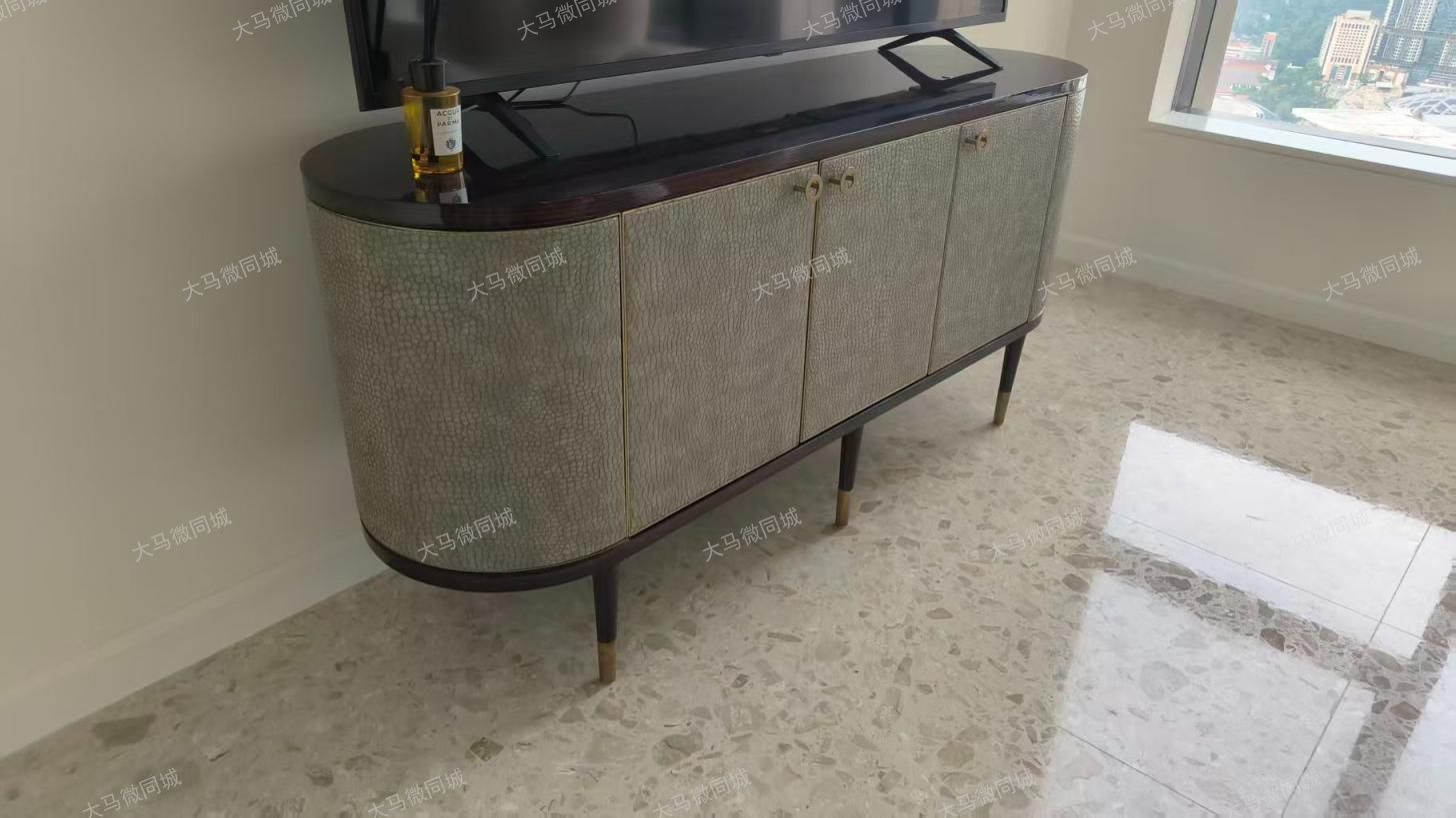 ✅ 仿蛇皮纹柜门+金属包边+铜色脚套,质感在线