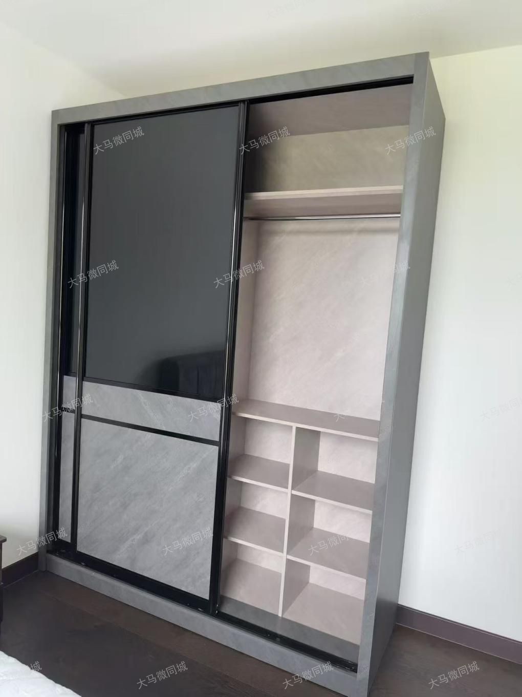 ✅ 款式:灰黑撞色推拉门衣柜,现代简约风格