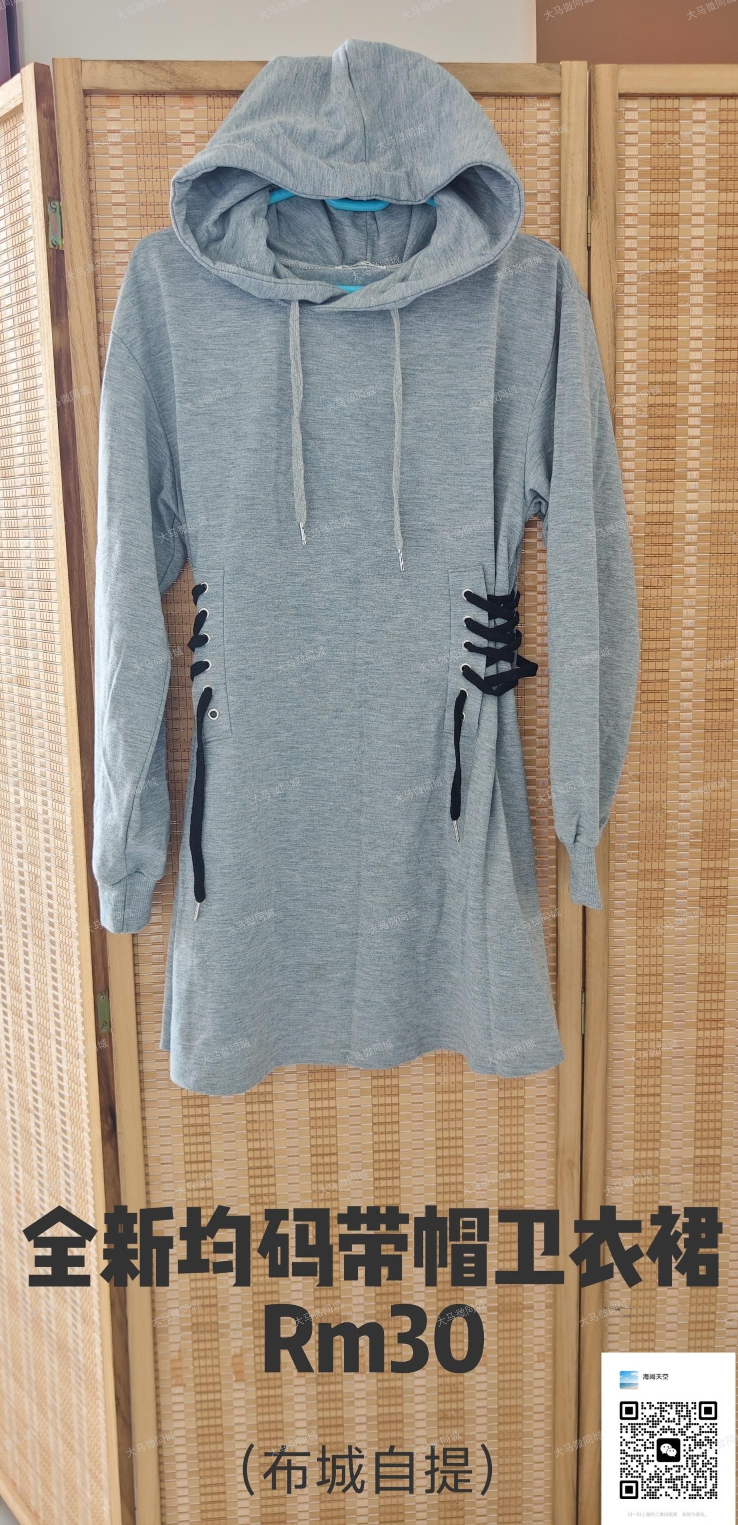 1. 全新灰色带帽卫衣裙(均码) | RM30