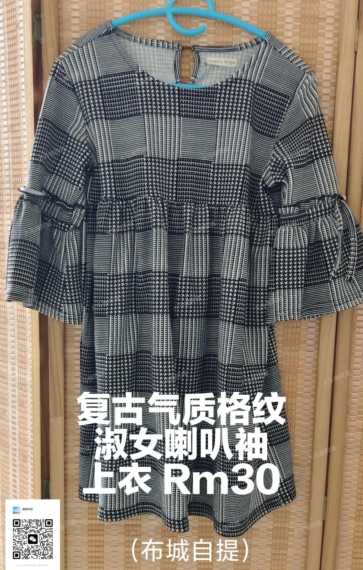 2. 复古格纹喇叭袖气质上衣 | RM30