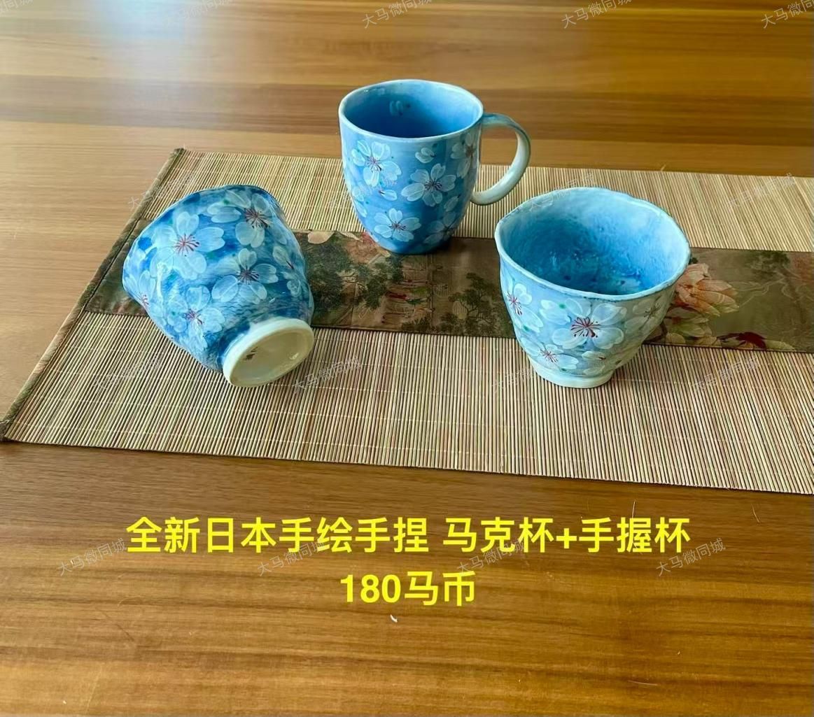 4. 全新日本手绘手捏马克杯+手握杯套装:RM180