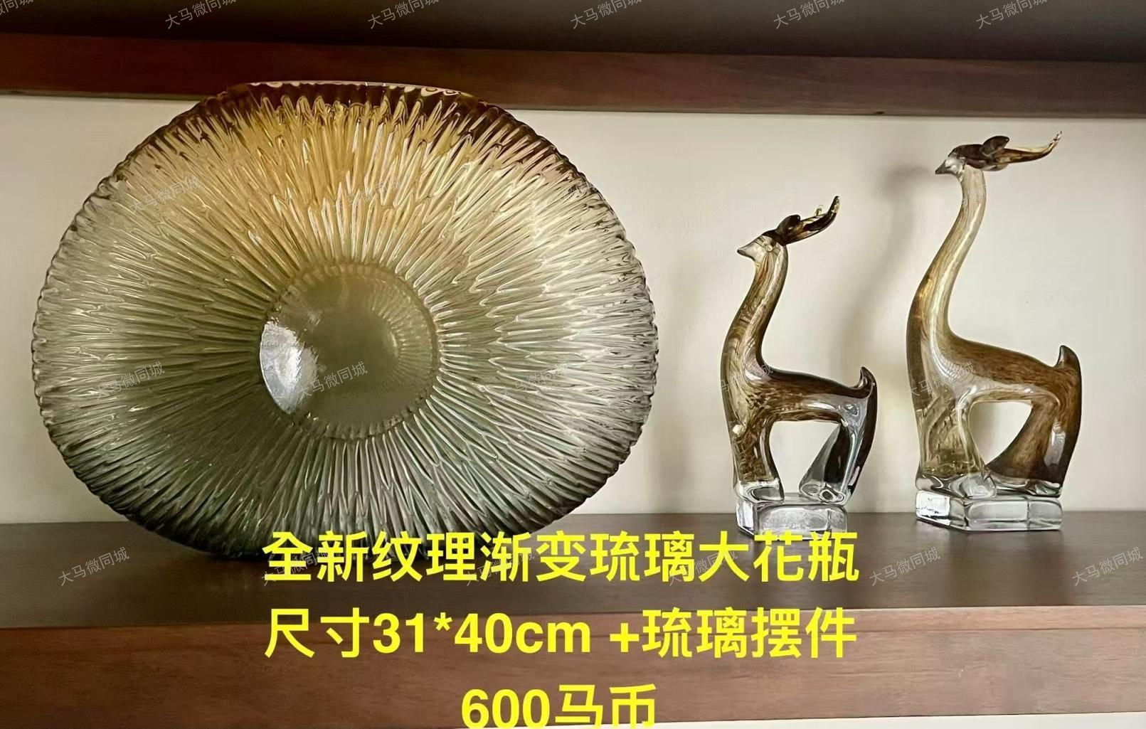 3. 全新纹理渐变琉璃大花瓶(尺寸31×40cm)+琉璃小鹿摆件一对:RM600