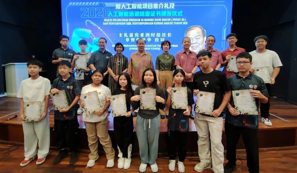 亚洲时报社长拿督张丹华应邀担任主礼嘉宾,主持亚庇中学新人工智能培训项目推介礼暨人工智能培训结业证书颁发仪式。
