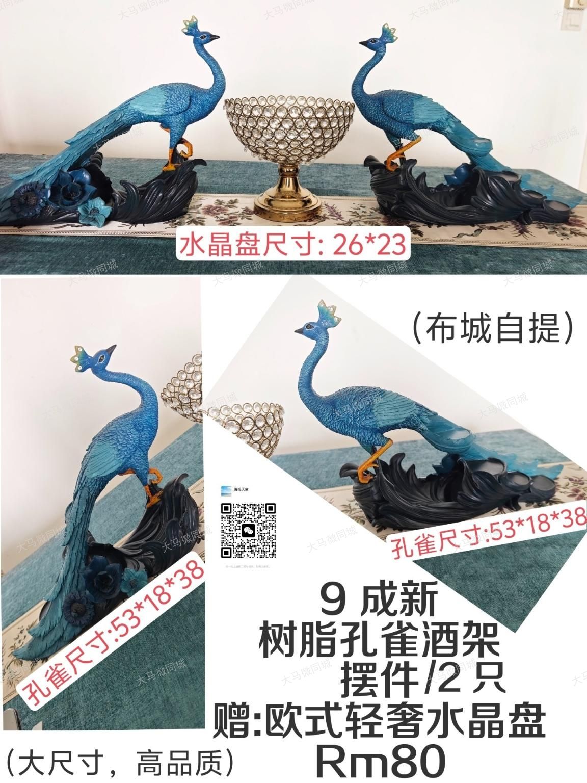 🦚【出】9成新树脂孔雀酒架摆件(2只)💰价