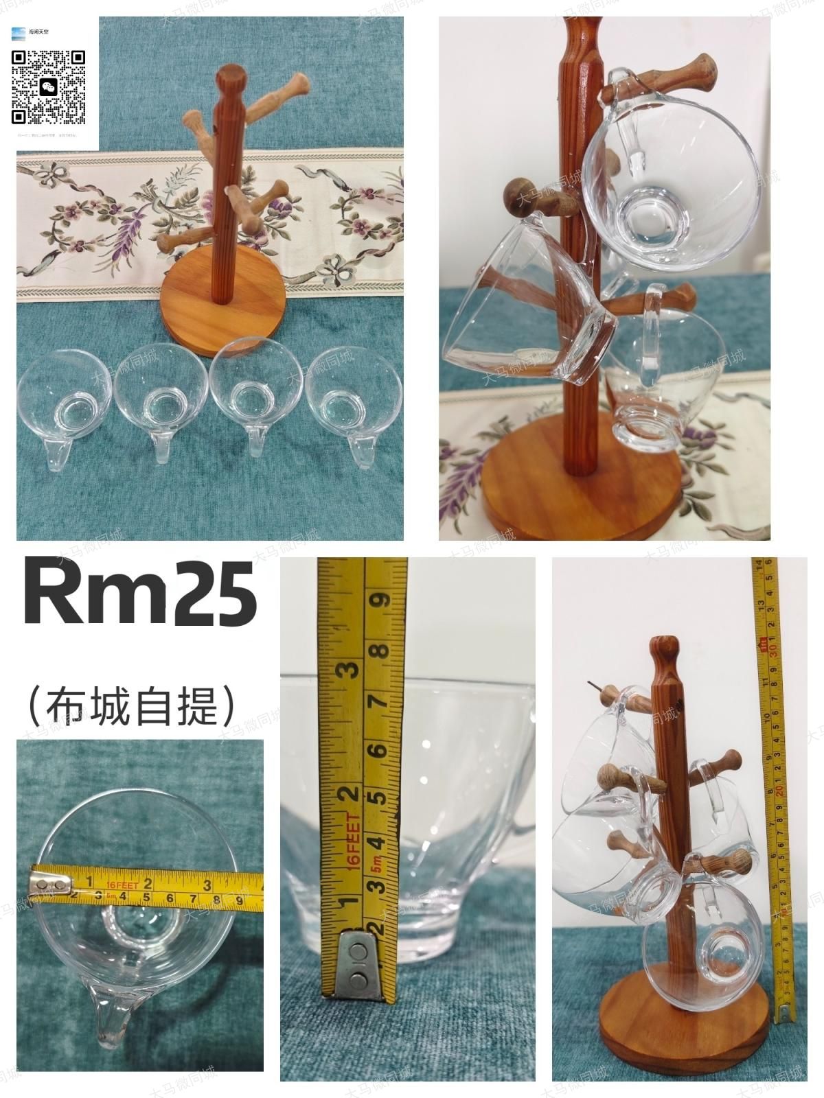 ☕【出】木质杯架+4只玻璃咖啡杯套装💰价格