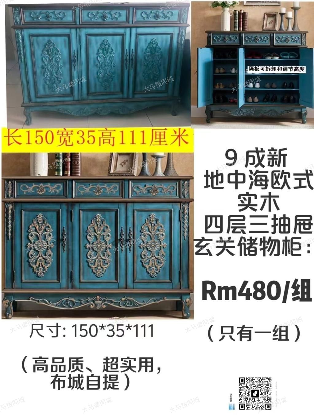🪑【出】9成新地中海欧式实木玄关储物柜💰单