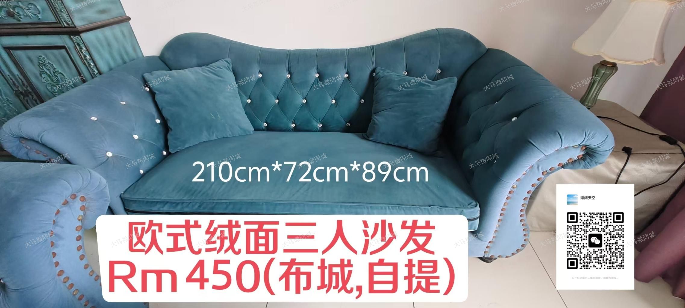 🛋️【出】欧式绒面三人沙发💰价格:Rm450